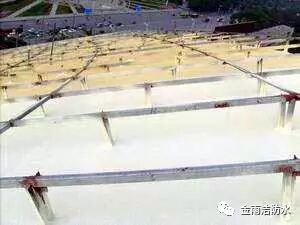 采用高壓無氣噴涂機現(xiàn)場直接發(fā)泡成型工藝,使屋面防水保溫一體化,形成的防水保溫層連續(xù)無接縫,具有保溫效果優(yōu)異、粘接性能好、強度高、抗?jié)B透性強和耐老化性能優(yōu)異等特點。