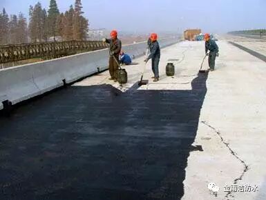 b.刷油法:是用毛刷將瀝青膠在基層上刷開,刷油長度以300~500mm為宜,出油邊不應(yīng)大于50mm,然后快速鋪壓卷材;